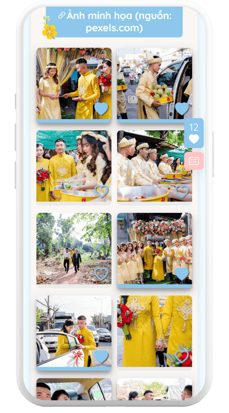 Chia sẻ trang được tạo từ bước 1 đến khách hàng (ví dụ: https://s2.io.vn/albums/CSZ5Lj7EYHGpkm). Khách hàng thả tim vào những bức ảnh ưng ý.